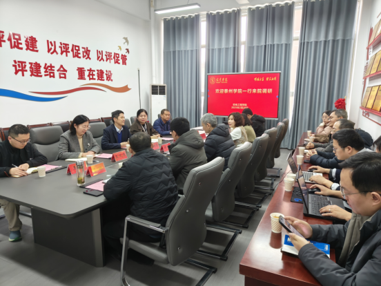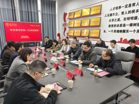 2月28日,泰州学院教育教学评估中心主任刘华带领机电工程学院、信息工程学院、医药与化学化工学院的相关领导及教师一行十三人,赴机电工程学院开展调研交流活动。机电工程学院院长杨树臣、质量评估处处长曹盈、教务处副处长王凤侠、机制系主任王燕锋及副主任王宇参加了会议。