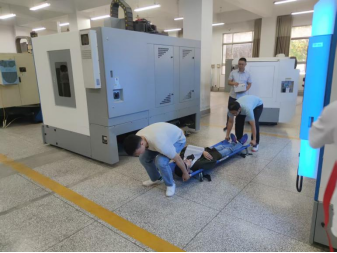 下午14时,演练正式开始。场景设定为一名学生在操作机床时因操作失误导致手臂被机械部件划伤,现场突发险情。随着急促的警报声响起,实训中心立即启动应急预案:现场老师第一时间切断设备电源,迅速拨打急救电话并上报学院安全管理员;安全员携带急救箱赶赴现场,对伤者进行初步止血包扎,同时疏散围观人群,维持现场秩序。整个过程紧张有序,各环节衔接紧密,仅用时12分钟完成从险情报告到伤员转运的全流程处置。