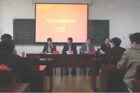 机电工程学院一直以来坚持“立德树人”根本任务,聚焦“三高目标”,聚力“四大突破”,以促进“三全育人”为目标,落实学生工作大会精神,念好“新三自经”,培养“新求索人”,建设“奉献学工”,不断加强辅导员团队建设。5月12日下午,“职”点工作室成立揭牌仪式在机电工程学院A403举行。出席此次揭牌仪式领导有:机电工程学院院长杨树臣、副院长唐友亮、刘萍。全体辅导员老师、各年级学生代表参加仪式。