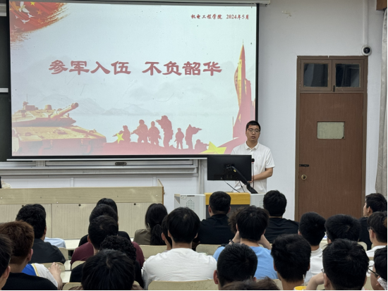 为深入贯彻习近平强军思想,鼓励大学生响应国家号召积极参军入伍,引领大学生携笔从戎、报效祖国。近日,机电工程学院在全院开展《参军入伍 不负韶华》的主题班会。
