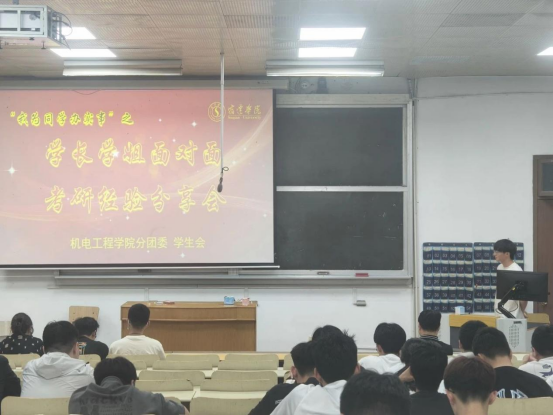 为进一步加强学院学风建设,激发青年学子的学习热情,帮助学生更好地掌握未来考研形势、明晰考研目标与规划、增强考研信心与决心,机电工程学院于6月6日举办2024届考研经验交流会,本次交流会邀请了2024届考研上岸的同学作为主讲人,分享备考经验。