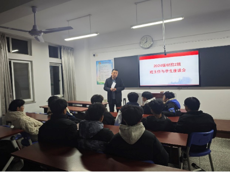 临近期末,范钧老师组织召开班会、班委会、学困生座谈会,深化立德树人,强化学以致用,转化班风学风。期间,范钧老师针对24材控2班面临的现存困惑,结合材料成型及控制工程专业特点,对学生所关切的学习困惑、生活困惑、职业困惑等进行解惑、启发和引导。