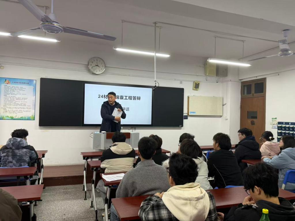 在锦囊工程答辩会上,范钧老师与李云泽老师共同聆听学生发言,围绕学业规划深入交流探讨。范钧老师凭借深厚的专业素养,细致剖析学生成长困惑,精准指明奋斗目标,展现了协同育人的默契与合力。在随后的班干部会议期间,范钧老师强调要围绕学业提升主线,明确班委职责分工,强化班级学风建设。针对学业困难学生,范钧老师专门组织见面沟通,从学习方法、生活难题、奋斗目标三个维度进行个性化指导,帮助学生破解成长瓶颈,激发内生动力。