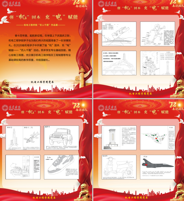 热烈庆祝中华人民共和国成立72周年,机电工程学院开展“机电人的爱国情”主题展,以立德树人为根本任务,做好思想教育与专业教育有机融合,弘扬爱国主义精神,培养广大青年爱国情操,彰显机电学子爱国情怀。