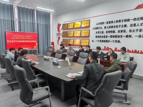 为促进高校人才与企业需求的精准对接,宿迁学院机电工程学院与宿迁维凯科技股份有限公司联合举办了校企合作交流会暨校园专场招聘会。此次活动旨在搭建校企沟通桥梁,为学生提供就业机会,为企业输送专业人才。