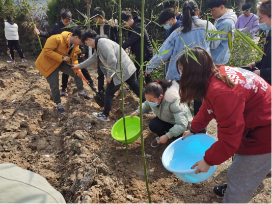 活动现场,教师党员和学生们首先带头劳作热情高涨,挖坑、搬树苗、挥锹铲土、填土压实、提水浇灌,大家三俩一组,通力合作,干劲十足。仅两个多小时,就栽植树苗70株,一排排茁壮的青竹苗挺立在学院泗阳景区间,为美丽的校园又增添了一片绿意和活力。