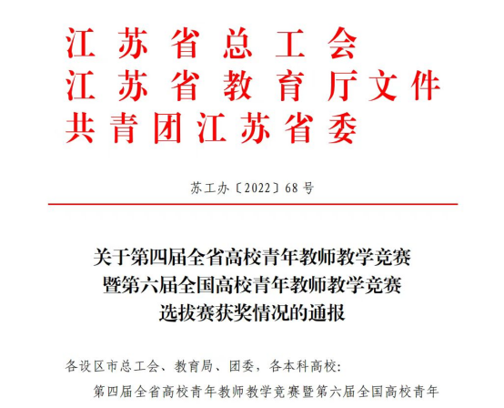 此次比赛由省总工会、省教育厅、团省委主办,省教育科技工会承办,是江苏省引领性竞赛一级竞赛项目,以“上好一门课”为竞赛理念。竞赛内容包括教学设计、课堂教学、教学反思和课程思政建设基础知识测试,旨在锤炼青年教师教学能力,推动教育改革创新发展。每位参赛教师赛前提交一门课程的20个学时的教学设计和教学课件,比赛前半小时现场随机抽取其中1个学时进行课堂教学展示和反思,综合四部分的成绩得出总分。